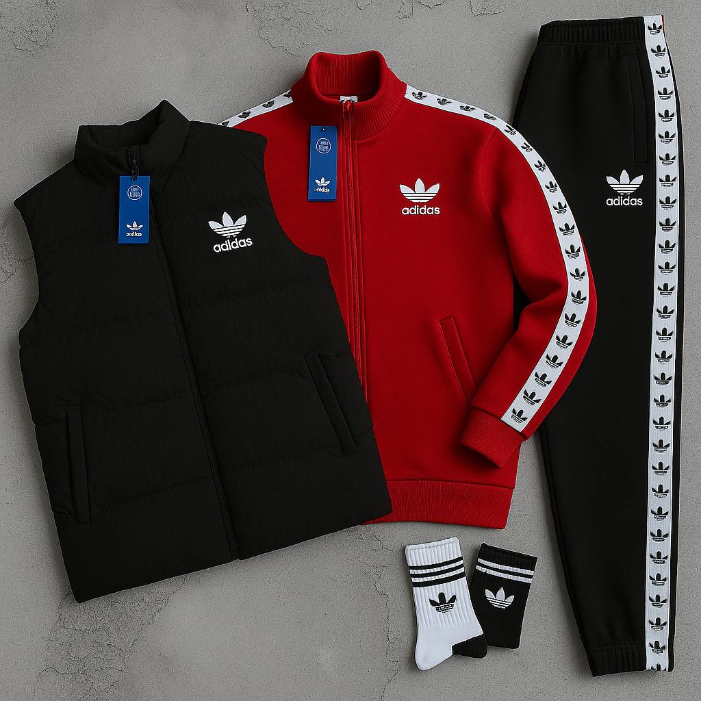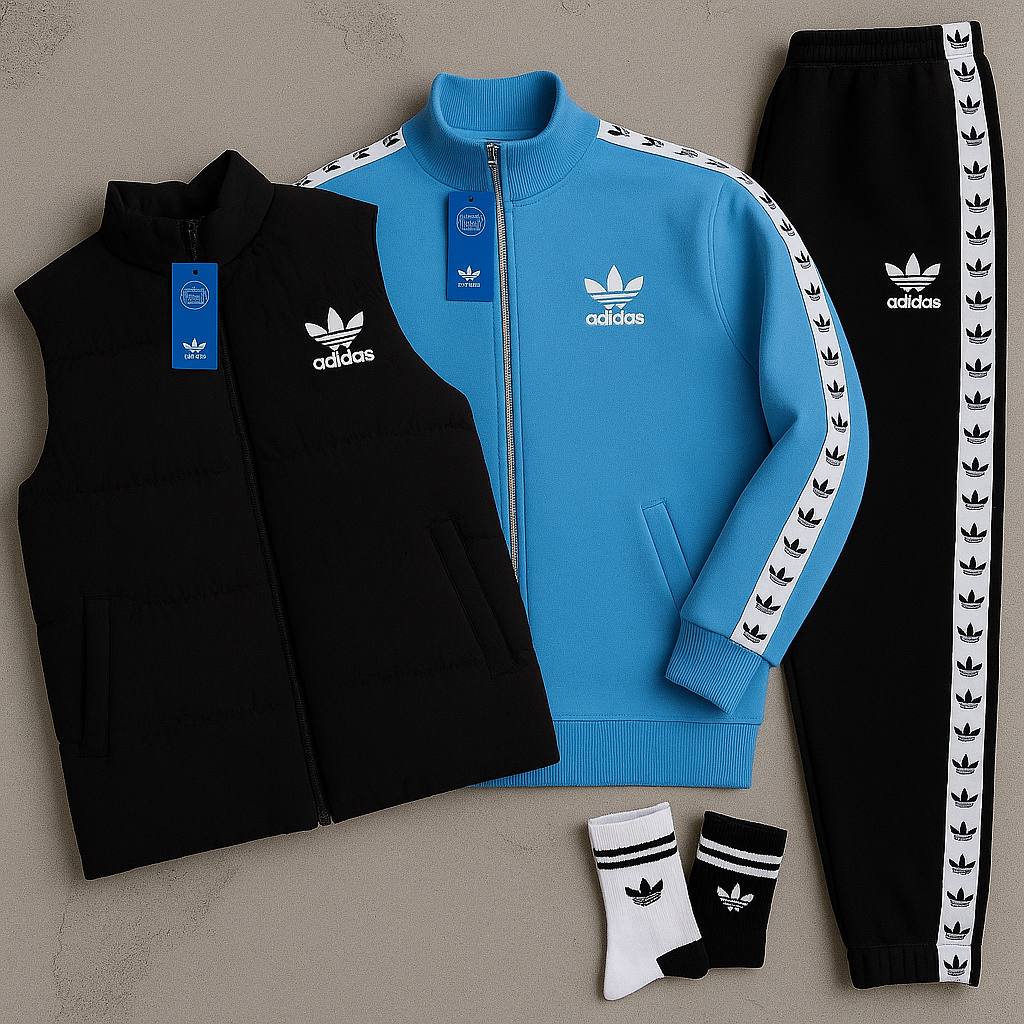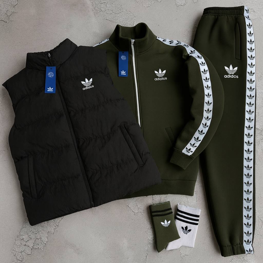 Discover the AD™ Complete Set, the perfect kit to take on every day with style and comfort. This set includes a fleece tracksuit with a full-zip hoodie and matching joggers, winter puffer jacket that’s warm yet lightweight.