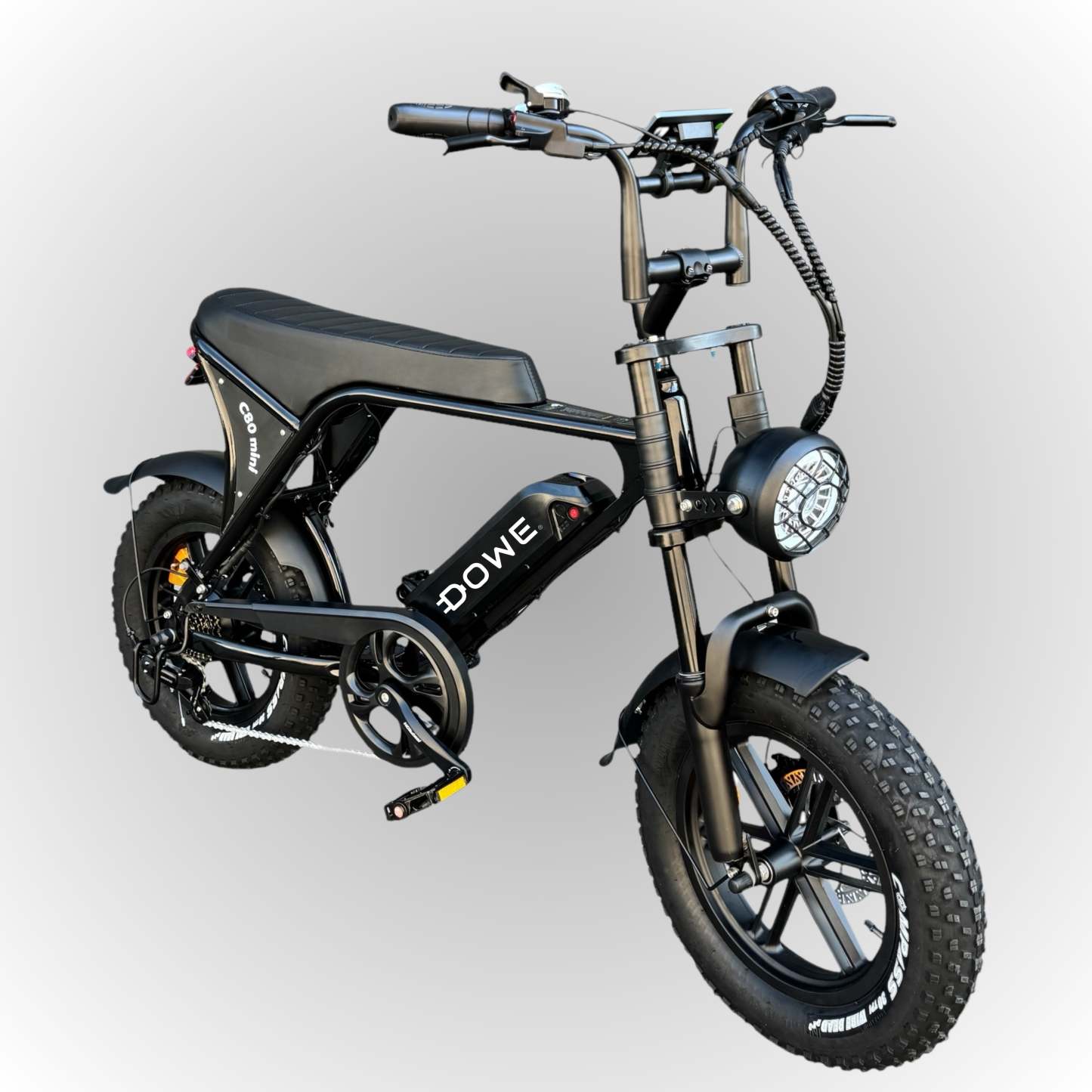 De Dowe C80 zwart is dé elektrische mini fatbike die speciaal ontworpen is voor kleinere rijders. Dankzij het compacte en stijlvolle ontwerp is deze fatbike perfect voor personen vanaf 1,45 meter. Of je nu door de stad fietst of ruigere paden verkent, de Dowe C80 combineert comfort, prestaties en stijl in een compact formaat dat geen concessies doet.