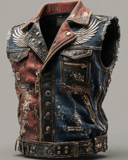 Men's autumn and winter wings embroidered rivet contrast leather jacket 5128
