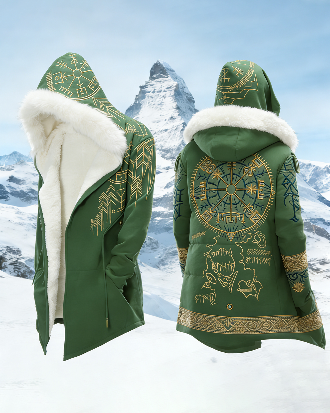 Men's Winter Nordic Viking Theme Compass Embroidered Fashion Thick Warm Hooded Cardigan 3467