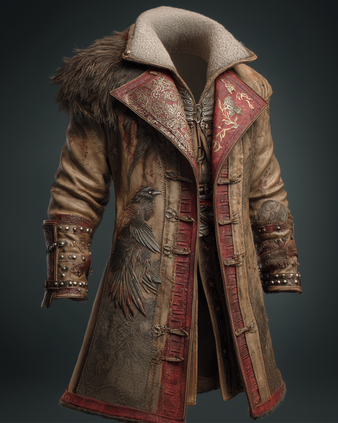 Men's Autumn/Winter Nordic Viking Theme Raven Embroidery Fashion Thickened Warm Leather Coat 1227