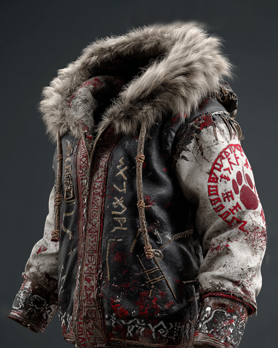 Men's Autumn/Winter Nordic Viking Theme Bear Paw Embroidery Fashion Thickened Warm Leather Jacket 8039