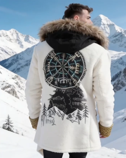 Men's Autumn/Winter Nordic Viking Theme Compass Embroidery Fashion Thickened Warm Jacket 9654