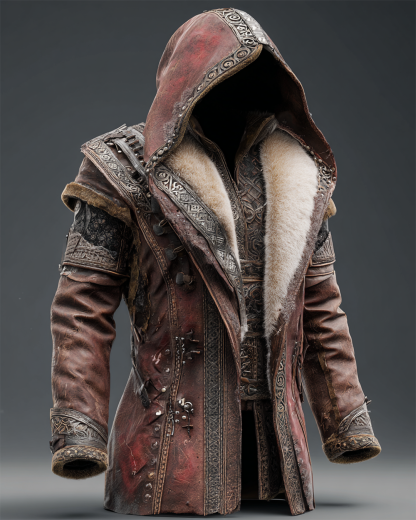 Men's Autumn/Winter Nordic Viking Theme Celtic Knot Embroidered Fashionable Thickened Warm Leather Jacket 8547