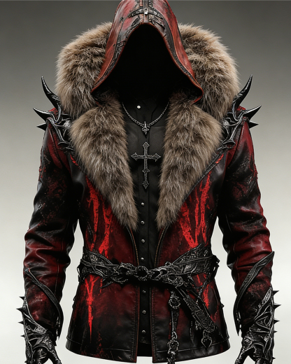 Men's Autumn/Winter Viking Style Cross Embroidered Warm Thick Leather Jacket 2920