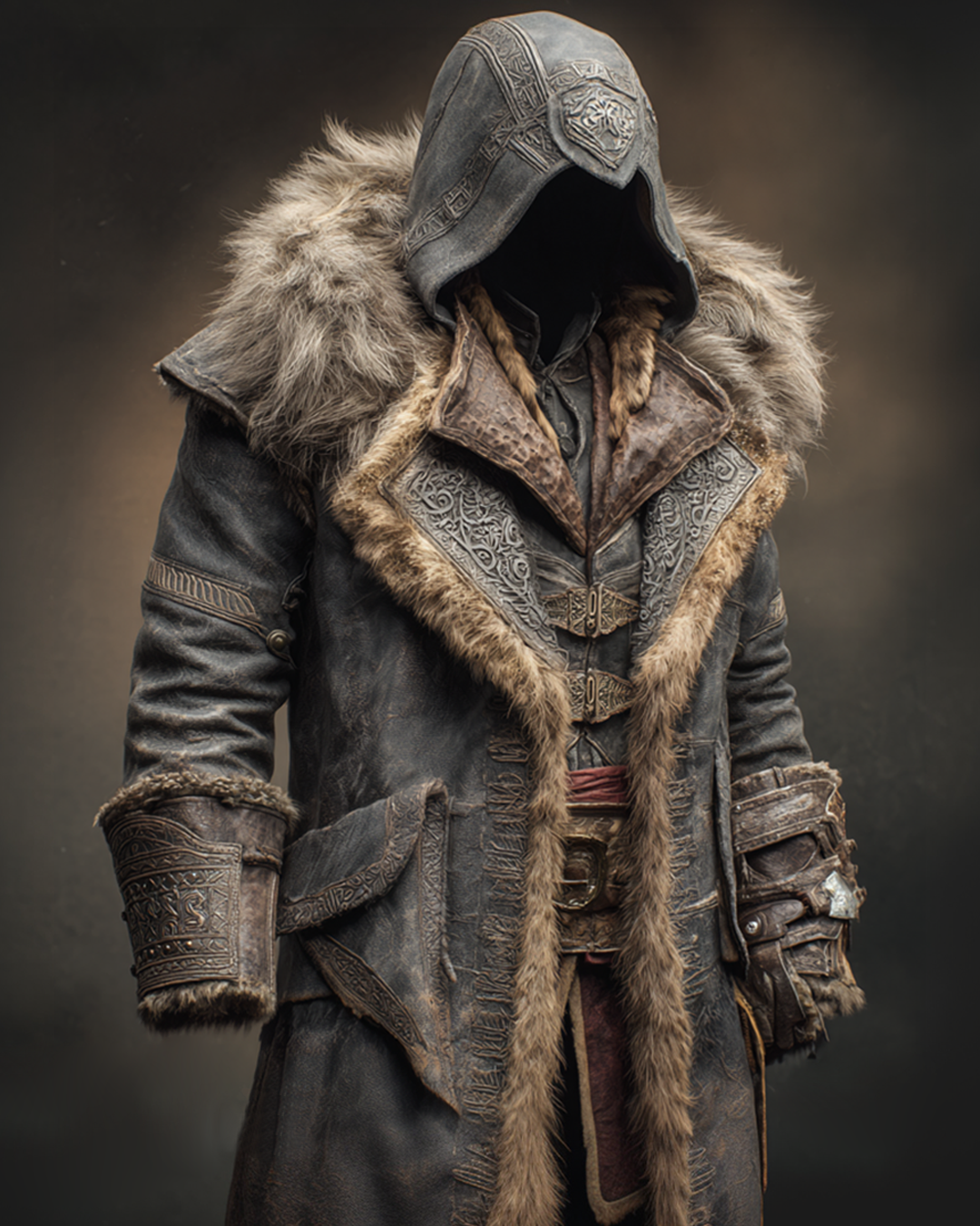 Men's Autumn/Winter Viking Style Embroidered Warm Thick Leather Jacket 3322