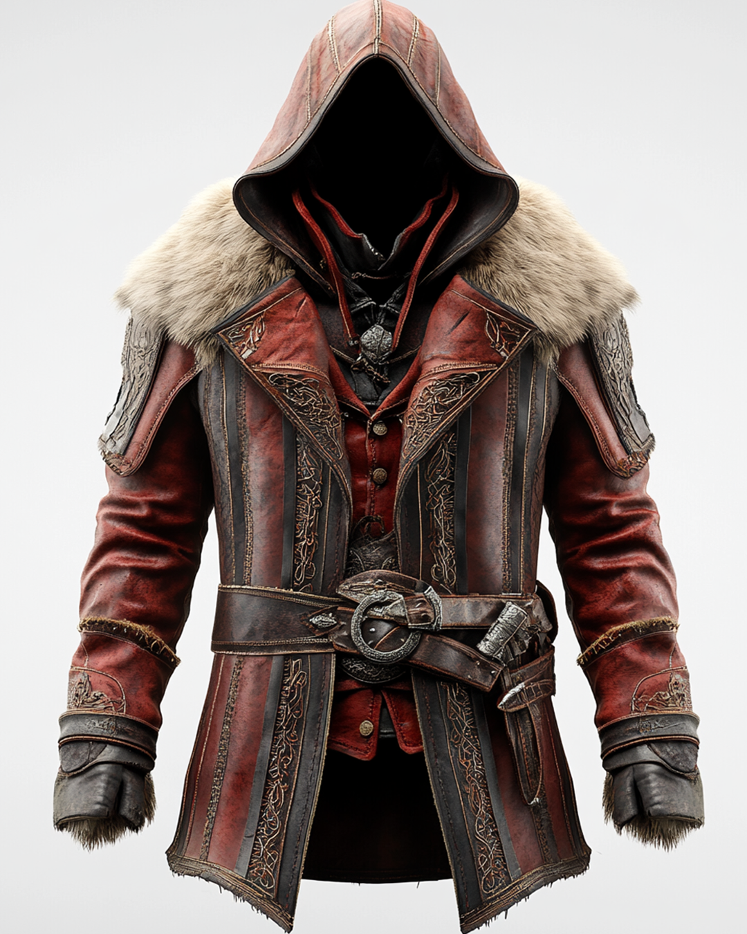 Men's Autumn/Winter Viking Style Embroidered Warm Thick Leather Jacket 3715