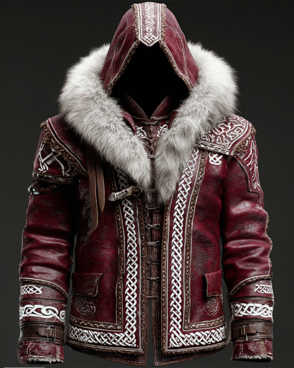 Men's Fall/Winter Viking-Themed Embroidered Fashion Thickened Warm Leather Jacket 4418
