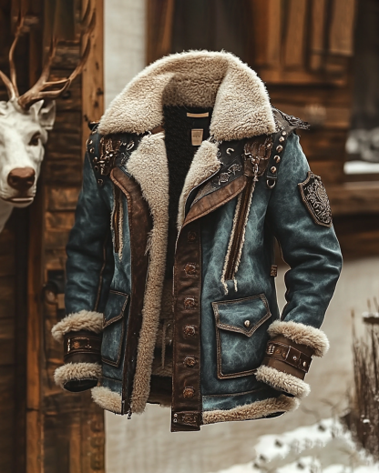 Men's Fall/Winter Viking-Themed Embroidered Fashion Thickened Warm Leather Jacket 8023