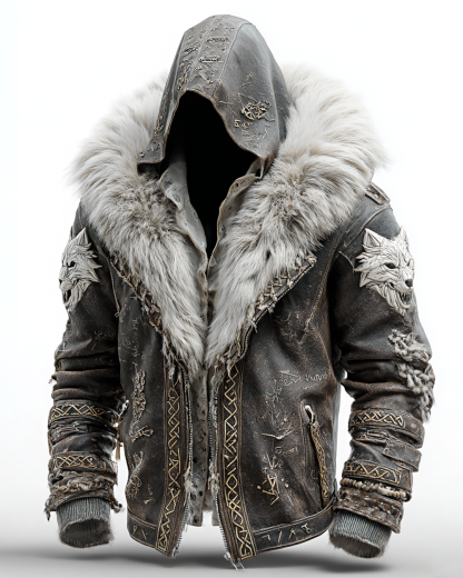 Men's Fall/Winter Viking-Themed Wolf Head Embroidered Thickened Warm Jacket 8803
