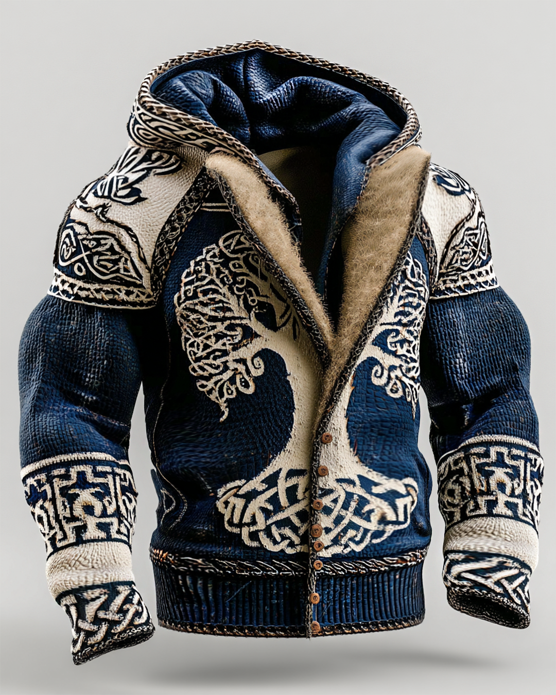 Men's Fall/Winter Viking-Themed Tree of Life Embroidered Thickened Warm Jacket 9013