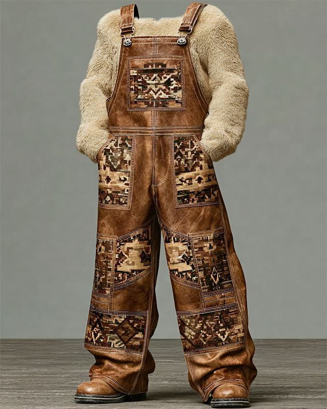 Men's Fall/Winter Western-Style Leather Suspenders Pants 6558