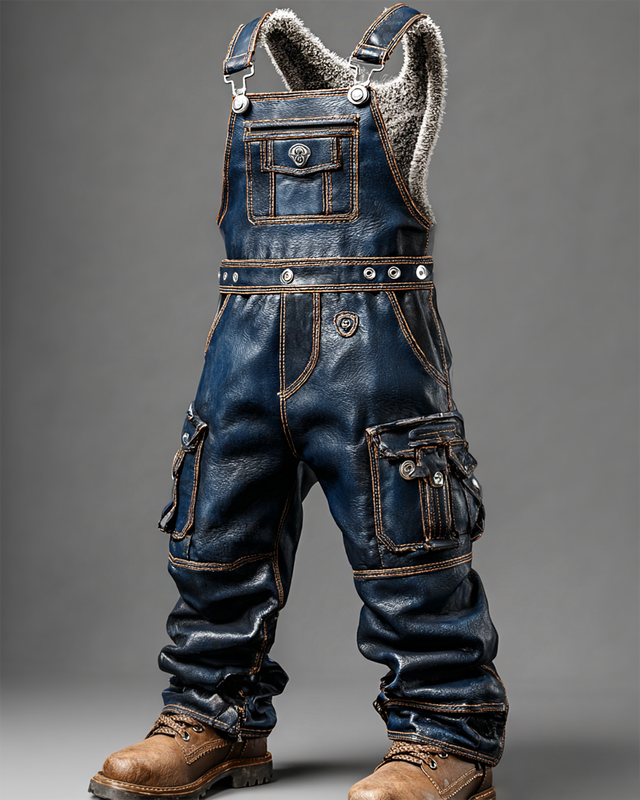Men's Fall/Winter Western-Style Leather Suspenders Pants 7477
