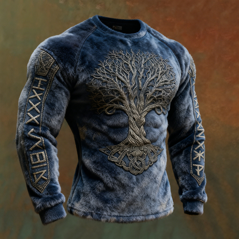 Men's Mythic Fable World Tree Rune Art Cozy Flannel Hoodie 70ab