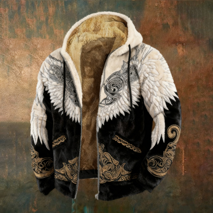 Men's Retro Celtic Knot Wings Color Block Pattern Plush Zip-up Jacket 3c94