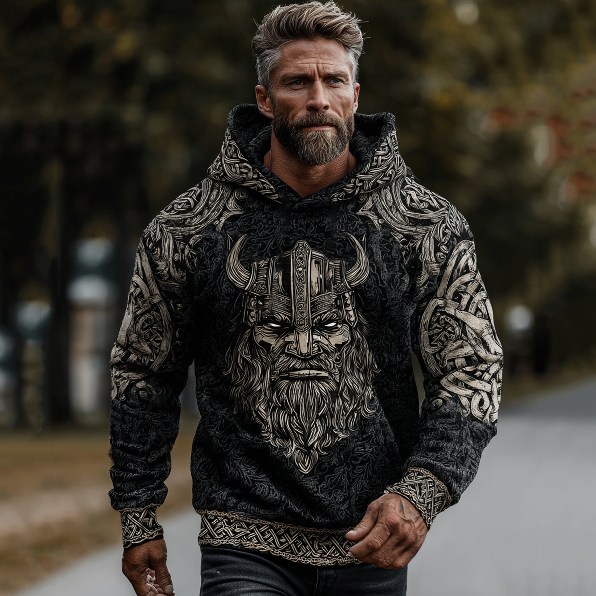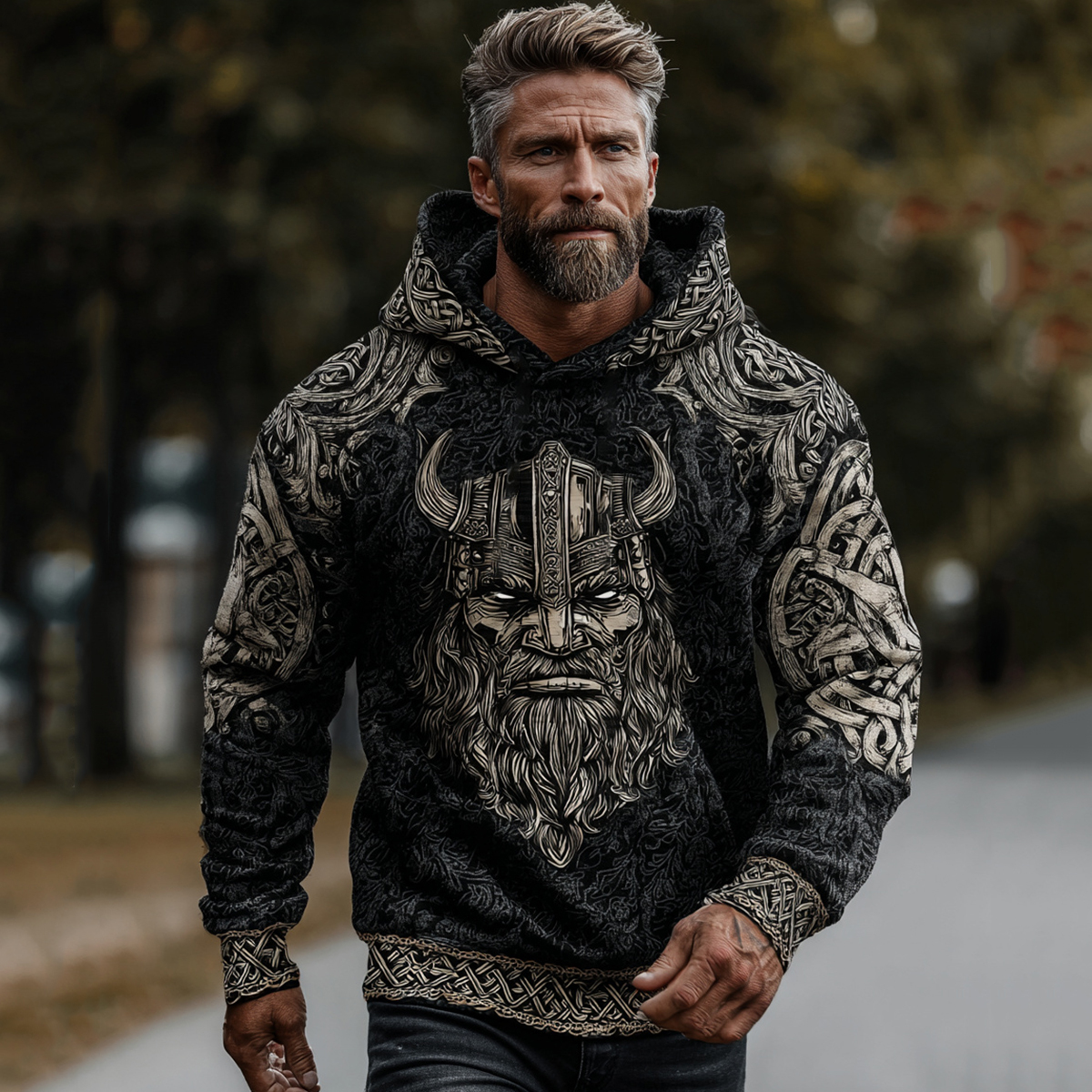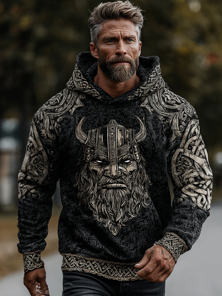 Men's Retro Viking Pattern Casual Hoodie 92c5