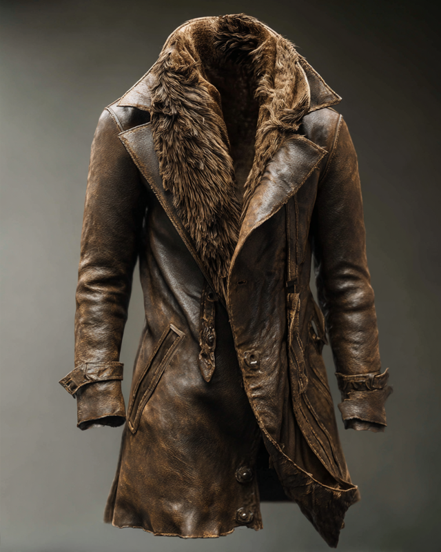 Men's Stylish Fur Collar Leather Coat 2303