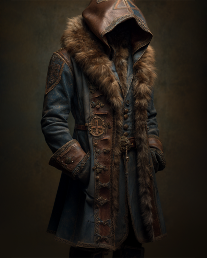 Men's Winter Fashion 3D Embroidered Leather Hooded Coat 5943