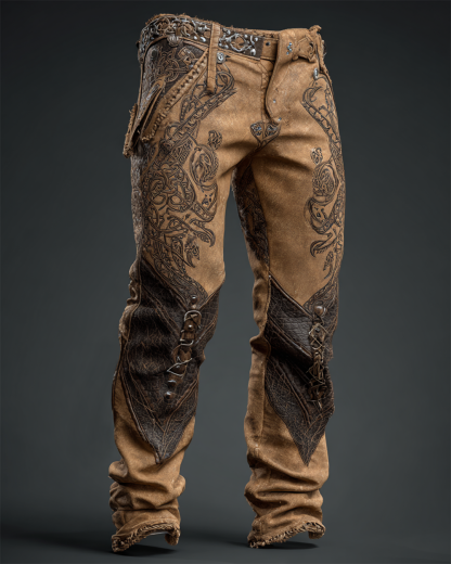 Men's winter Nordic Viking style embroidered fashionable warm leather pants 2473