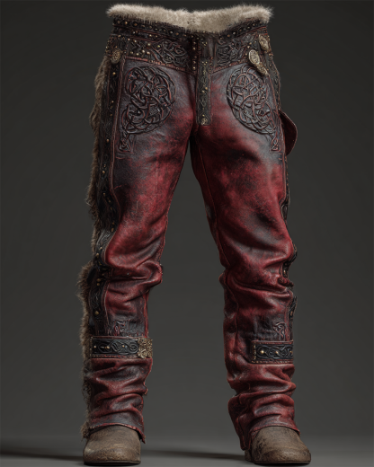 Men's winter Nordic Viking style embroidered fashionable warm leather pants 2876
