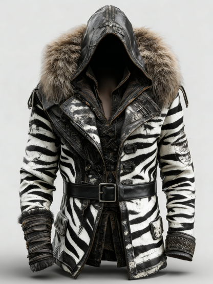 MEN'S WINTER ZEBRA STRIPES WARM AND STYLISH FUR LEATHER JACKET 3391