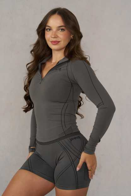DESIGN: This compression long sleeve built with that Gotham-after-midnight energy. This seamless 1/4-zip top shapes and sculpts while giving you that tactical, ready-for-anything feel. The subtle detailing hits like armor, keeping it elevated, athletic, and darkly iconic. Sleek thumbholes, a sharp zipper line, and contour panels make it perfect for training, layering, or straight-up channeling your inner vigilante.
