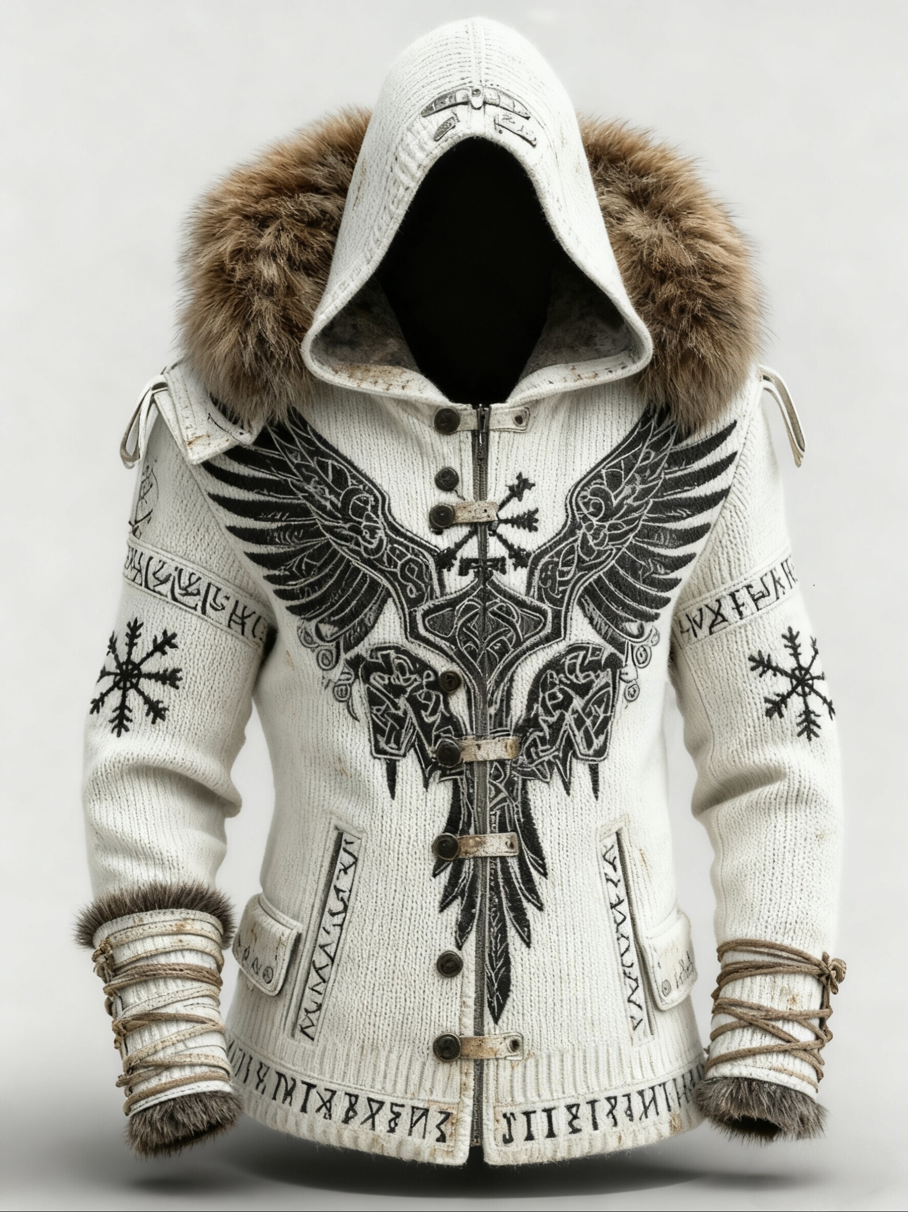 Winter Men's Fashionable Vinking Warm Hooded Jacket e718